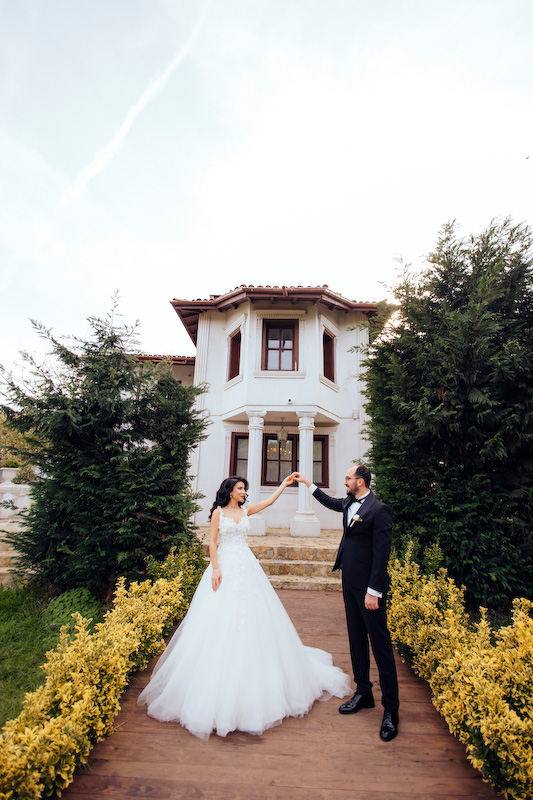 Çekim ilerledikçe zaman yavaşladı. Bir an köşkün önünde el ele dönülen küçük bir dans, bir an doğanın içinde yakalanan sessiz bir bakış… Bu anlar poz vermekten çok, yaşamın içinden süzülen sahneler gibiydi. Benim için düğün fotoğrafçılığı tam da bu demek: Zorlamadan, akışa bırakarak, çiftlerin kendileri olabildiği anları yakalamak.
