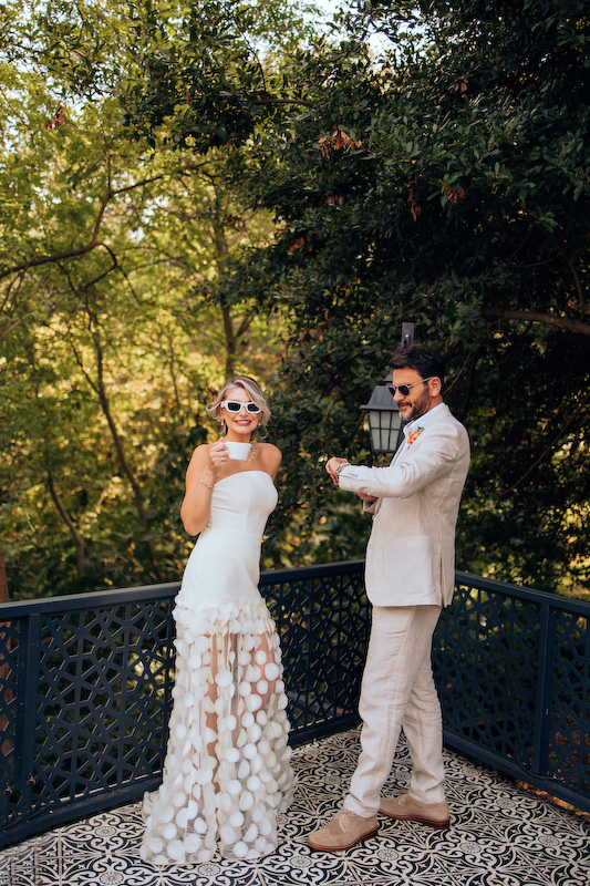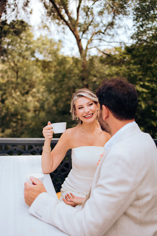 Kasrın kemerleri altında yürürken, çiçeklerin arasından geçerken, bazen bir kahve molasında bazen göz göze gelip gülümserken fotoğraflar kendiliğinden oluştu. Benim işim sadece o anları yakalamaktı. Zorlamadan, acele etmeden, “hadi poz verin” demeden… Çünkü gerçek duygular zaten yolunu bulur.