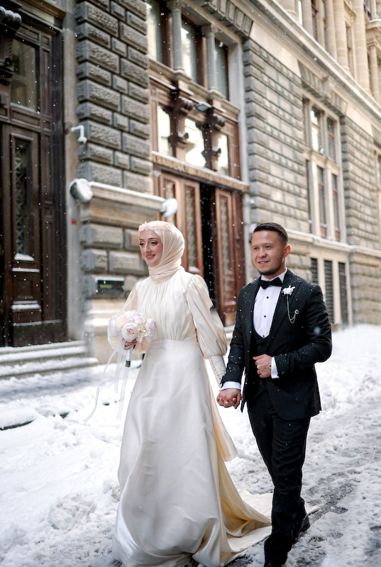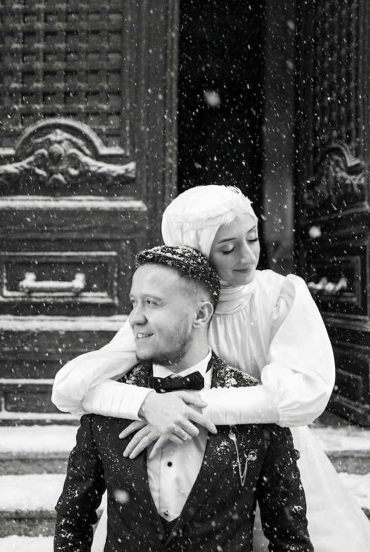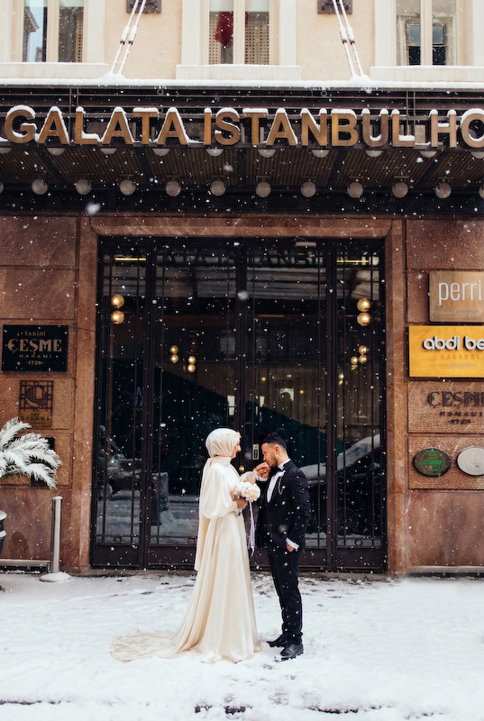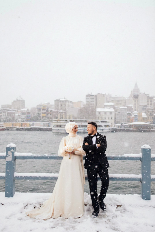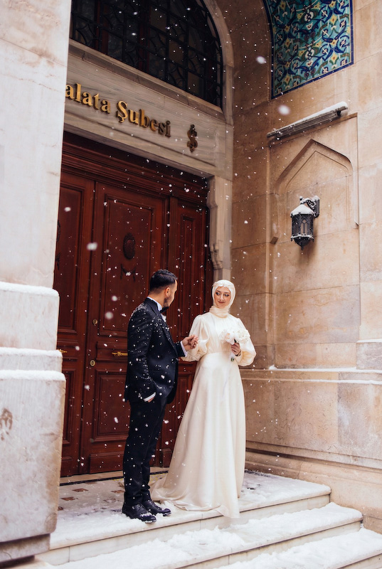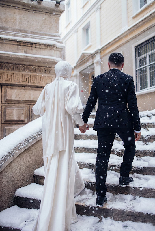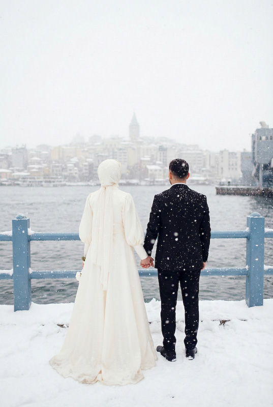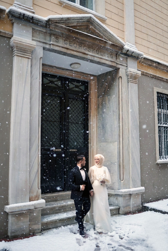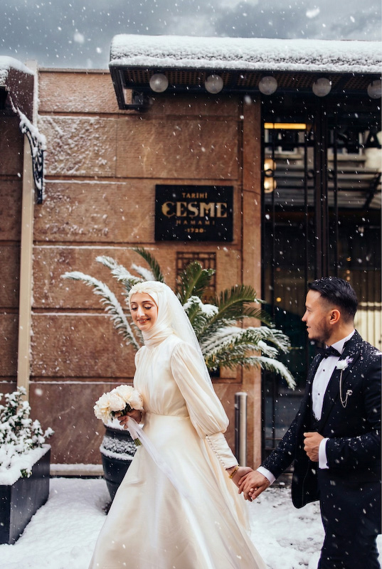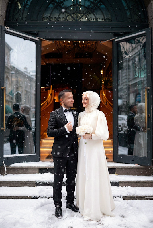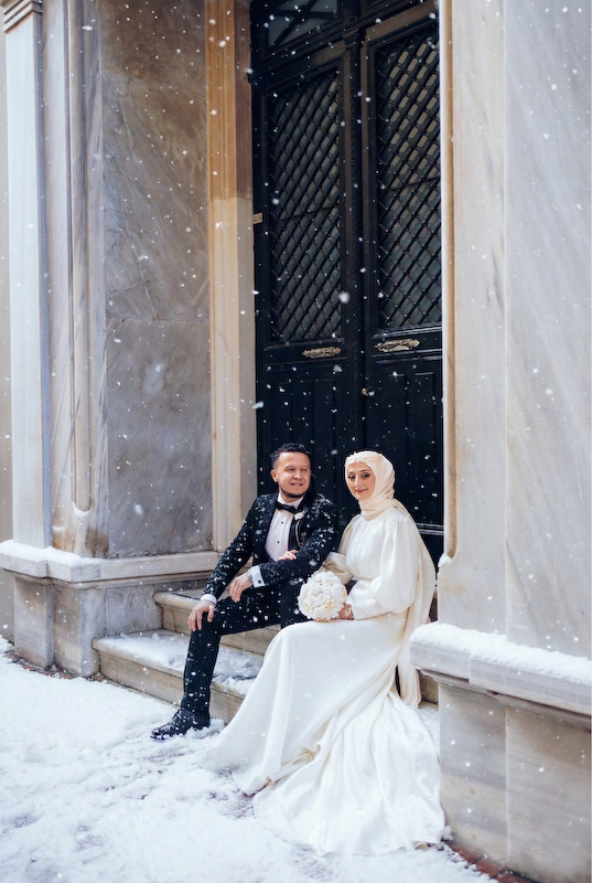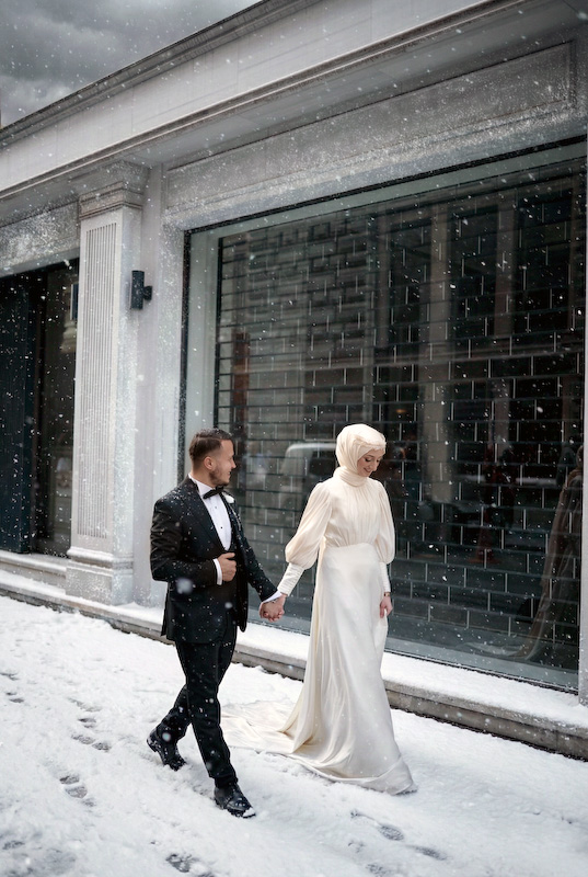 Bazı aşk hikâyeleri mevsim tanımaz. Yazın sıcağında başlar, kışın karında yürümeye devam eder. Songül ve Zafer’in hikâyesi de tam olarak böyle… İstanbul sokaklarında, taş duvarların ve zamanın izlerini taşıyan binaların arasında başlayan bu düğün çekimi, aslında güneşli bir yaz gününde yapıldı. Ama bugün baktığımızda, kar taneleri sessizce omuzlarına düşüyor; şehir susuyor, aşk konuşuyor.